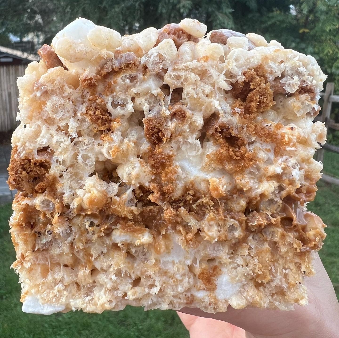 Here we have a layer of cookie butter and an entire oatmeal cream pie between two biscoff cookie skrispiez treats!
